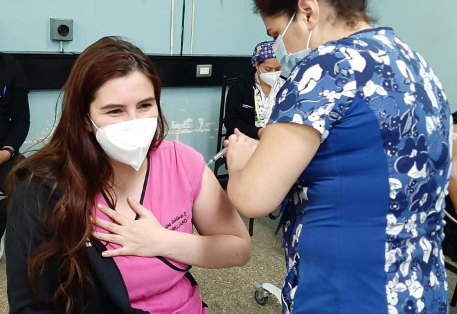 Se trató, además, de las primeras personas en la provincia de San Antonio en ser parte del Plan Nacional de Vacunación para prevenir el avance de la pandemia que afecta al país.