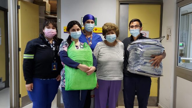 Con una donación de elementos de protección personal para la Unidad de Cuidados Medios (UCM), María Moya, paciente de esta unidad reconoció el trabajo de los funcionarios del Hospital Claudio Vicuña de San Antonio.