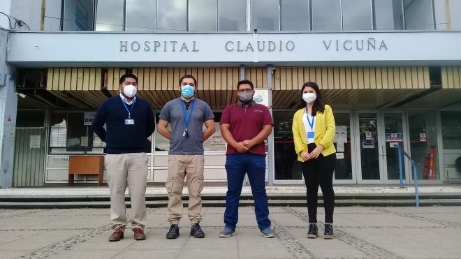 En la foto, de izquierda a derecha: Cristopher Paine, Encargado Reclutamiento y Selección; Fernando Ramírez, Jefe CC Mantenimiento y SSGG; Cristian Clarke, Ingeniero de Climatización y Gases Clínicos; Cristina Zúñiga, Psicóloga Reclutamiento y Selección.