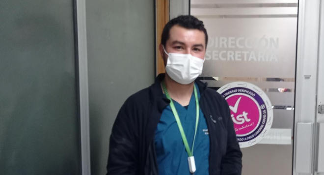 “También estoy a cargo del acompañamiento de usuarios que durante su hospitalización presenten sintomatología que requiera de apoyo. Es un trabajo súper dinámico, ya que además se realiza una labor de contención de los familiares”, especificó el funcionario.