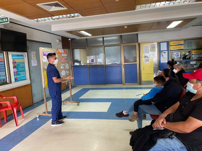 En el marco de la conmemoración del Día Mundial Contra la Tuberculosis, el equipo de profesionales del Programa de Control y Erradicación de la Tuberculosis (Procet) del Hospital Claudio Vicuña, efectuó una actividad educativa destinada a los usuarios que esta mañana llegaron al recinto asistencial.