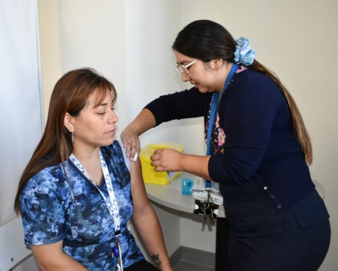 “Muy exitosa y prolija”. Así calificó María Fernanda Mendoza, enfermera a cargo de Salud Funcionaria, la Campaña de Vacunación contra la Influenza 2024 al interior de nuestro establecimiento, que a dos semanas de su inicio ya alcanza un 80% del personal inmunizado.
