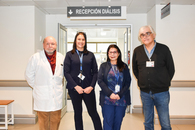 En la instancia fueron recibidos por nuestro nefrólogo y director técnico, Dr. Carlos Vega, y la enfermera supervisora, Claudia Ramírez, quienes les hicieron un recorrido por el servicio que se inauguró el pasado 6 de mayo, pudiendo compartir experiencias sobre el proceso de habilitación.