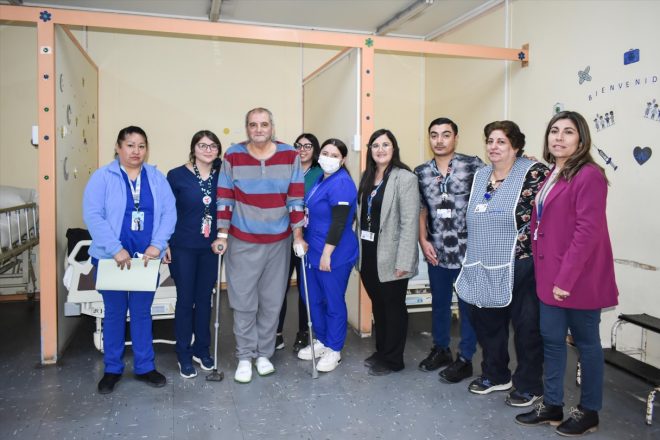 Por su parte, tras regresar desde Santiago a San Antonio, Amador Poblete fue recibido por parte del equipo directivo y dio sus primeros pasos en la sala de prealta. “Le doy gracias a la dirección del Hospital de San Antonio. Me siento muy bien y cómodo con la prótesis, no me duele, y estoy feliz de vuelta a casa. Me atendieron muy bien y estoy muy agradecido de la gente de la clínica y de todo el personal del hospital por cómo me recibieron”, expresó. Finalmente, Marcela Poblete, su hermana y cuidadora, relató con visible emoción el cambio que esta cirugía significará para sus vidas. “Es una gran alegría para mí esta operación y doy muchas gracias a Dios y a la Virgen de que tuvimos la posibilidad de poderlo operar. Muchas gracias a la gestión de la directora y de todo el personal del HCV, porque nos ayudaron mucho a salir adelante”, cerró.