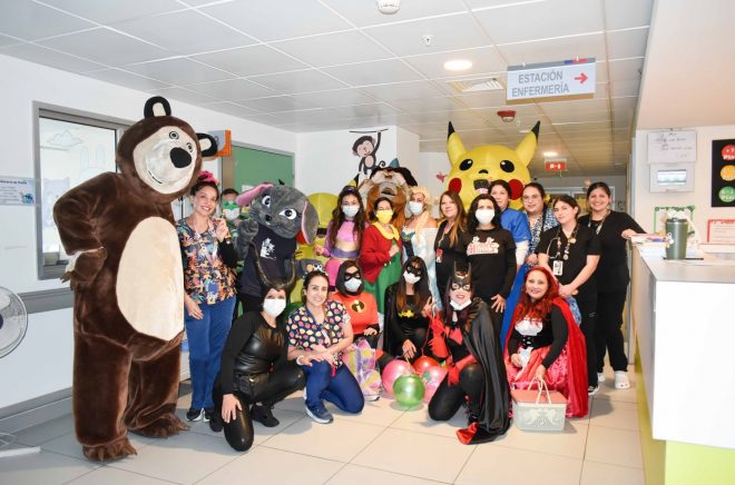 Entre aplausos y risas, madre e hijo Pikáchu, el gato con botas, el oso de Masha y Elsa de Frozen, entre otros personajes animados de series y películas, desfilaron y bailaron por los pasillos de Pediatría, Maternidad y el Bloque Médico Quirúrgico, entregando además diversos presentes a grandes y chicos.