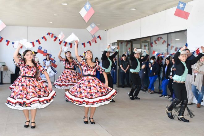 Durante la jornada también cantamos cuecas junto al grupo Entre Puertos, encabezados por la Dra. Catherine Osorio, jefa del servicio Dental, para posteriormente invitar a funcionarios y funcionarias de todos los estamentos a estrenar sus mejores zapateos en la pista.